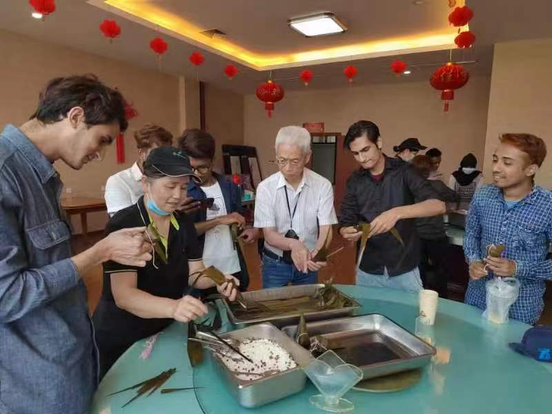 端午仲夏至,時清日複長。為弘揚我國優秀傳統民俗文化,6月2日,我校組織外籍師生包粽子慶端午活動。國際教育管理學院院長谷天祥,建築工程學院黨總支書記汪濤,網絡工程學院,應用外語學院等相關管理人員、日本籍教師岸本憲一和全體留校國際學生在粽葉飄香中感知中華傳統節日氛圍。